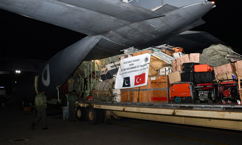 سی ون تھرٹی ساڑھے 18 ہزار پاؤنڈز امدادی سامان لے کر جا رہا ہے