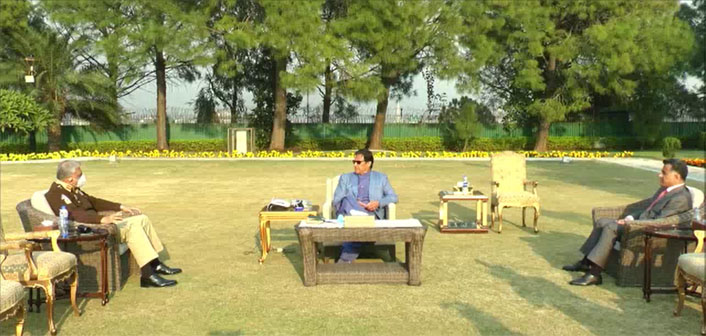 وزیر اعظم آفس سے جاری اعلامیے کے مطابق وزیر اعظم عمران خان اور آرمی چیف جنرل قمر جاوید باجوہ کی ملاقات میں اس عزم کا اظہار کیا گیا کہ قوم کے تعاون سے ملکی دفاع کو ہر صورت یقینی بنایا جائے گا۔