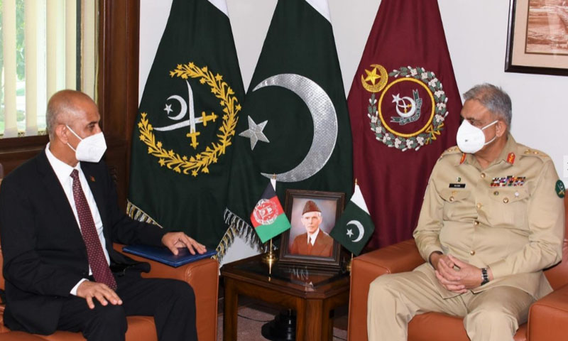 افغان سفیر نجیب اللہ علی خیل سے گفتگو کرتے ہوئے آرمی چیف نے کہا کہ افغانستان میں امن کا مطلب پاکستان میں امن ہے۔ ہمارا مقصد پرامن، خودمختار، جمہوری اور مستحکم افغانستان ہے۔