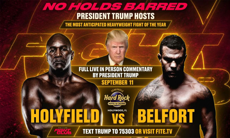 امریکا کے سابق صدر ڈونلڈ ٹرمپ 11 ستمبر کو فلوریڈا میں ہولی فیلڈ بمقابلہ بیلفورٹ باکسنگ میچ کی میزبانی کریں گے۔