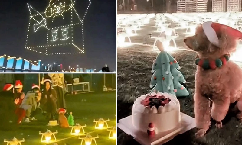 چینی صوبے ہنان میں خاتون نے ایک ٹیم ہائیر کی، جس نے رات گئے آسمان پر ڈرونز سے زبردست لائٹ شو کا مظاہرہ کیا، اس منفرد جشن میں شہریوں کی بھی بڑی تعداد شریک ہوئی، اور کئی لوگوں نے ننھے کتے کو ہیپی برتھ ڈے بھی کہا۔