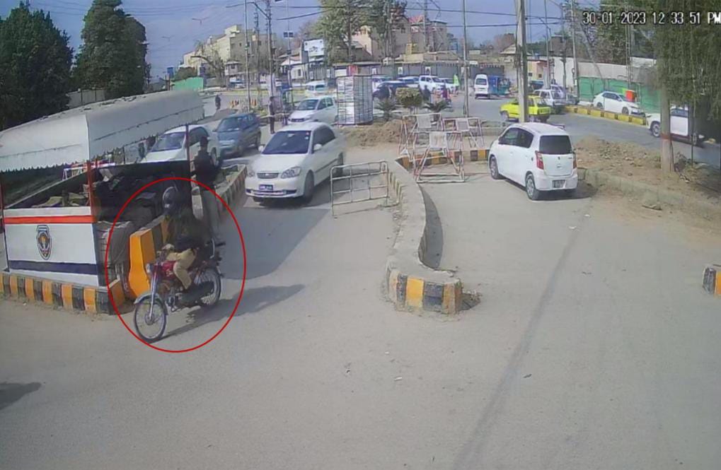 پولیس کو موصول ہونے والی تصویر میں دیکھا جاسکتا ہے کہ مبینہ حملہ آور، موٹرسائیکل پر سہولتکار کے پیچھے بیٹھا ہوا ہے۔