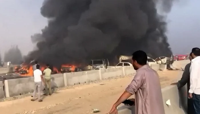 اطلاعات کے مطابق تصادم میں 29 گاڑیاں آپس میں ٹکرا گئیں ، ایک بس سمیت 6 گاڑیوں میں آگ بھڑک اٹھی جس کی وجہ سے زیادہ نقصان ہوا۔