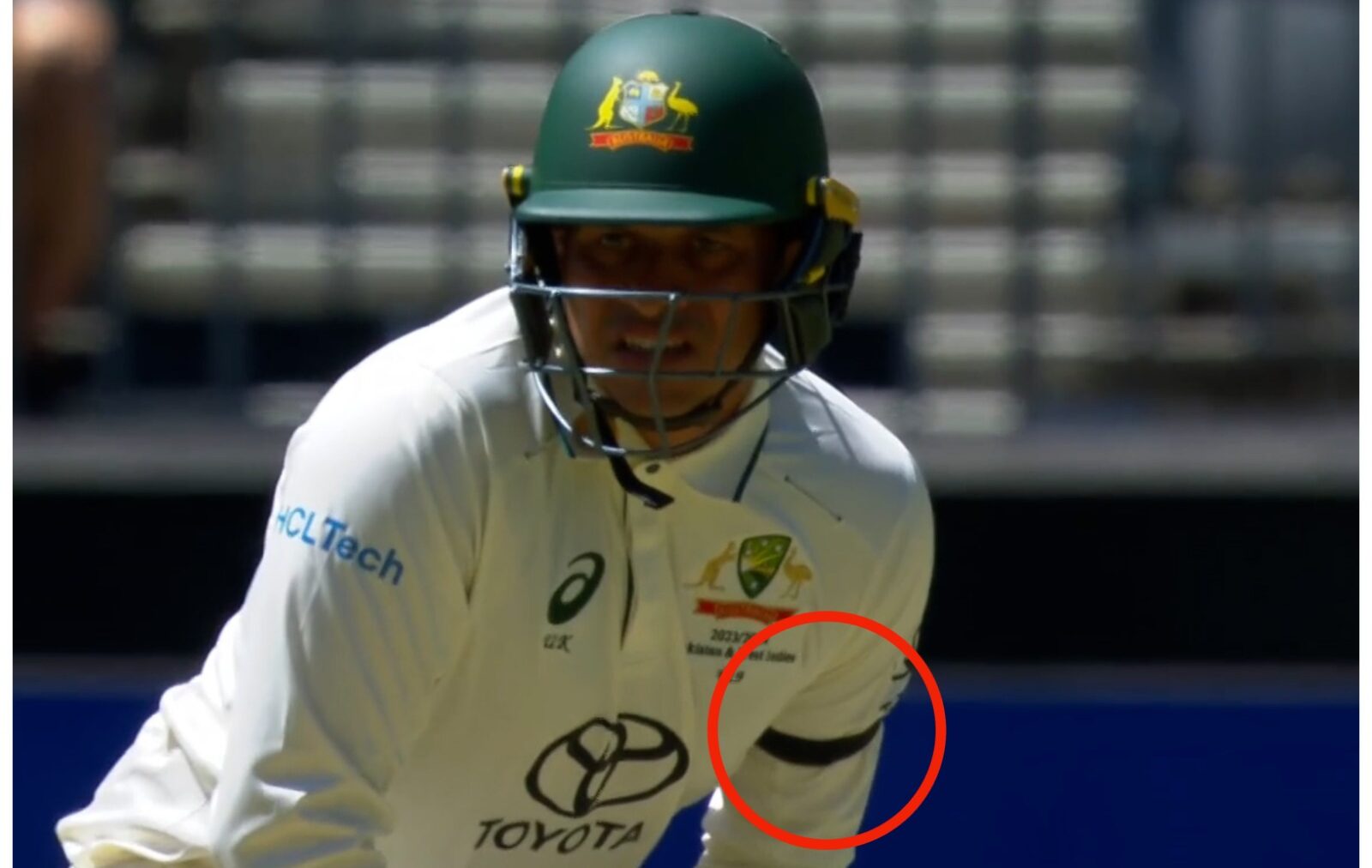 آسٹریلوی بلے باز عثمان خواجہ پاکستان کے خلاف پہلے ٹیسٹ میچ میں ہاتھ پر سیاہ پٹی باندھ کر بیٹنگ کرنے پہنچ گئے۔