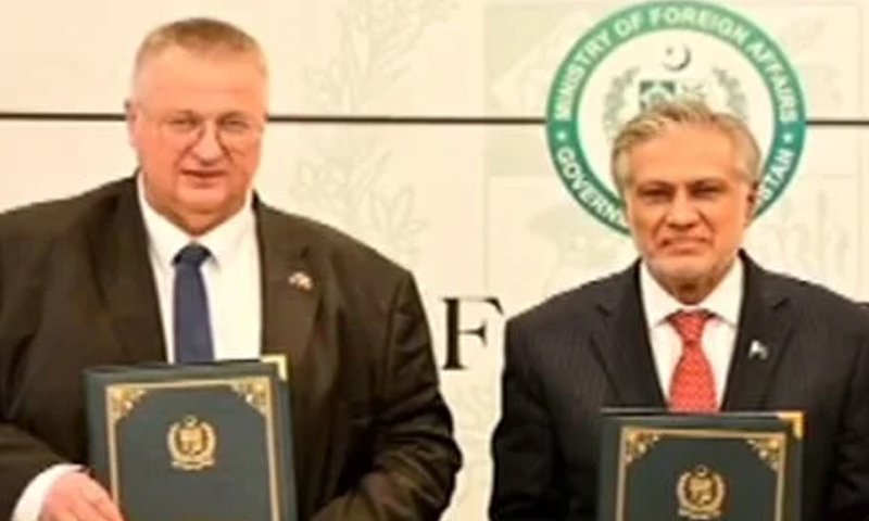 ترجمان دفترخارجہ کے مطابق پاک روس معاشی،تجارتی دوطرفہ تعاون کے مفاہمت نامے دستخط ہوگئے، تقریب میں وزیرخارجہ اسحاق ڈار اور روسی نائب وزیراعظم شریک ہوئے۔