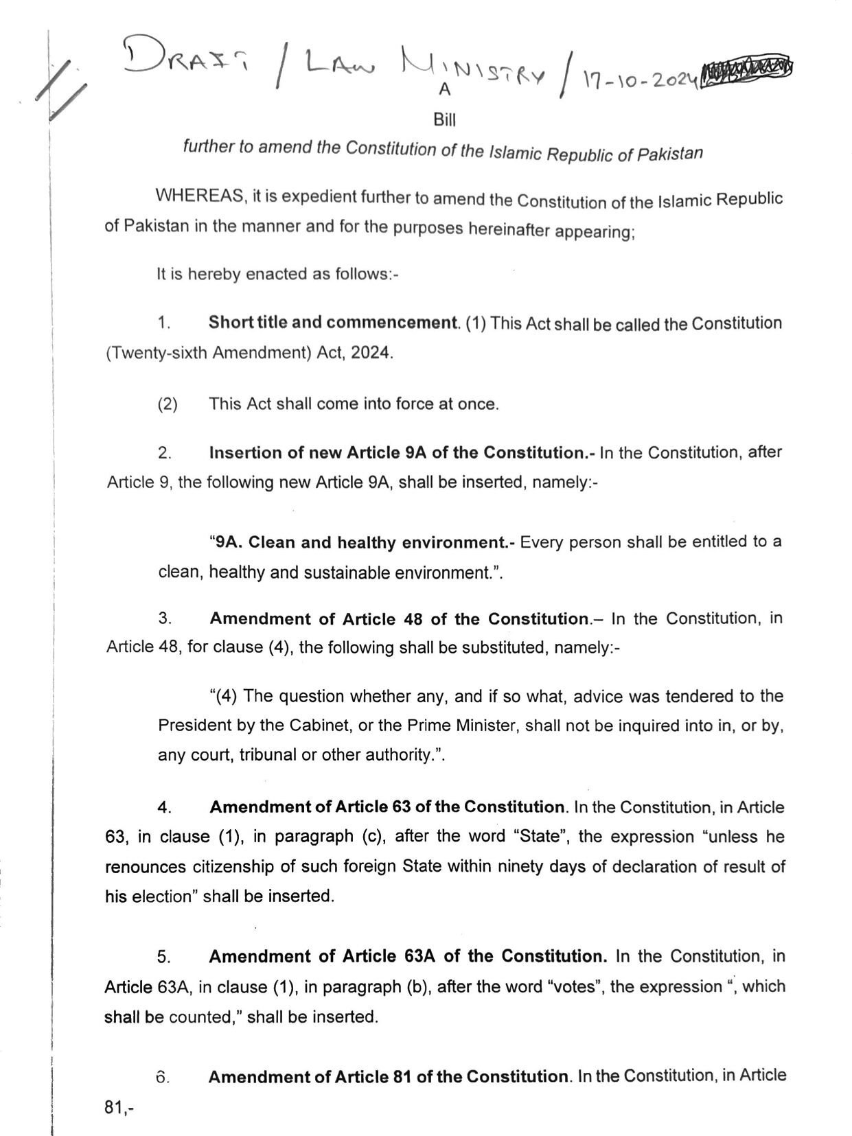 مجوزہ آئینی ترمیم کے تجویزشدہ ڈرافٹ کی کاپی ہم انویسٹی گیشن ٹیم نے حاصل کرلی ہے۔