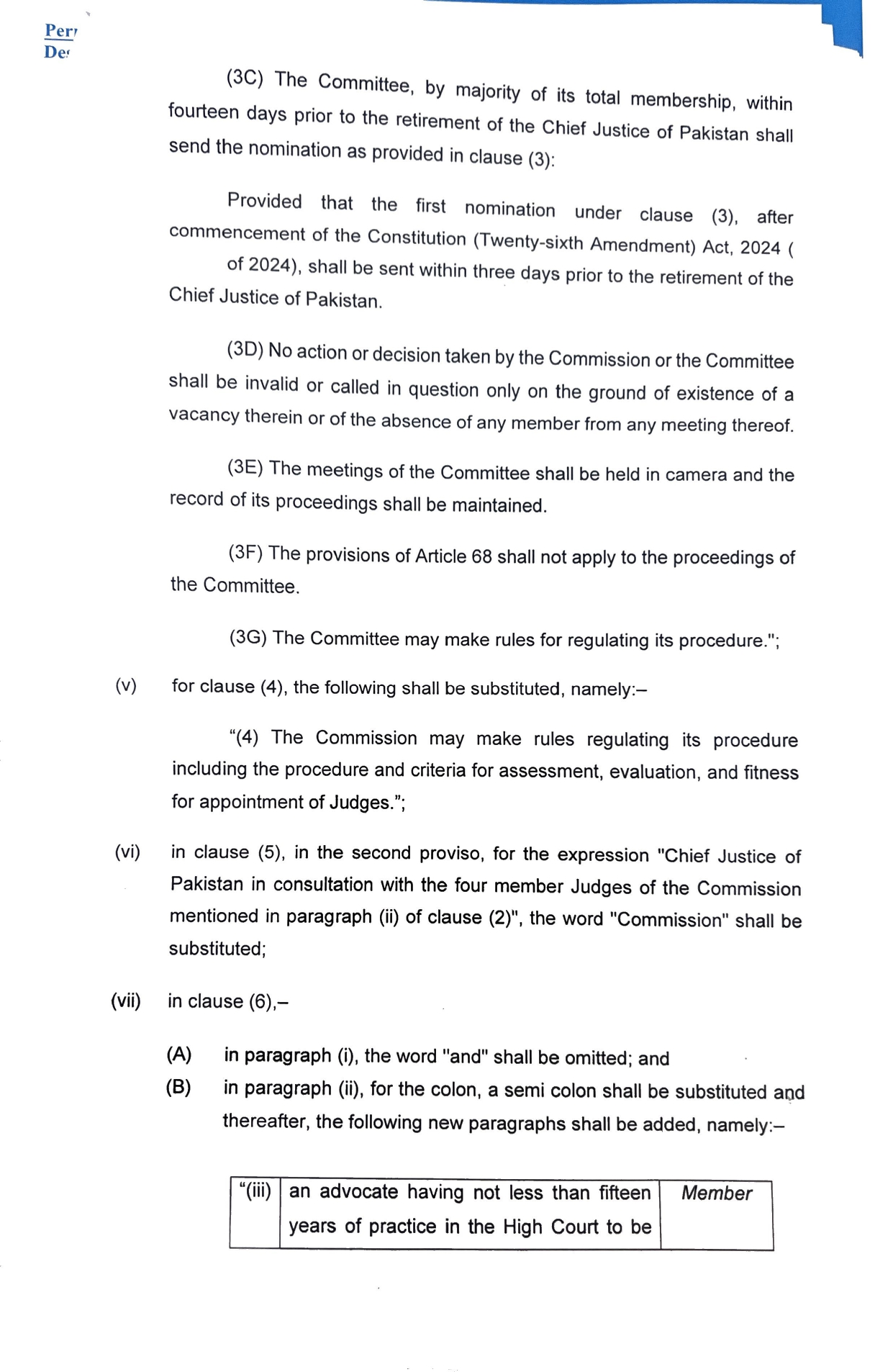 اب موسٹ سینئر جج چیف جسٹس نہیں بنے گا، تین موسٹ سینئر ججز میں کسی ایک کا انتخاب ہوگا،خصوصی کمیٹی کے 8 ارکان قومی اسمبلی اور چار ارکان سینیٹ کے ہونگے۔