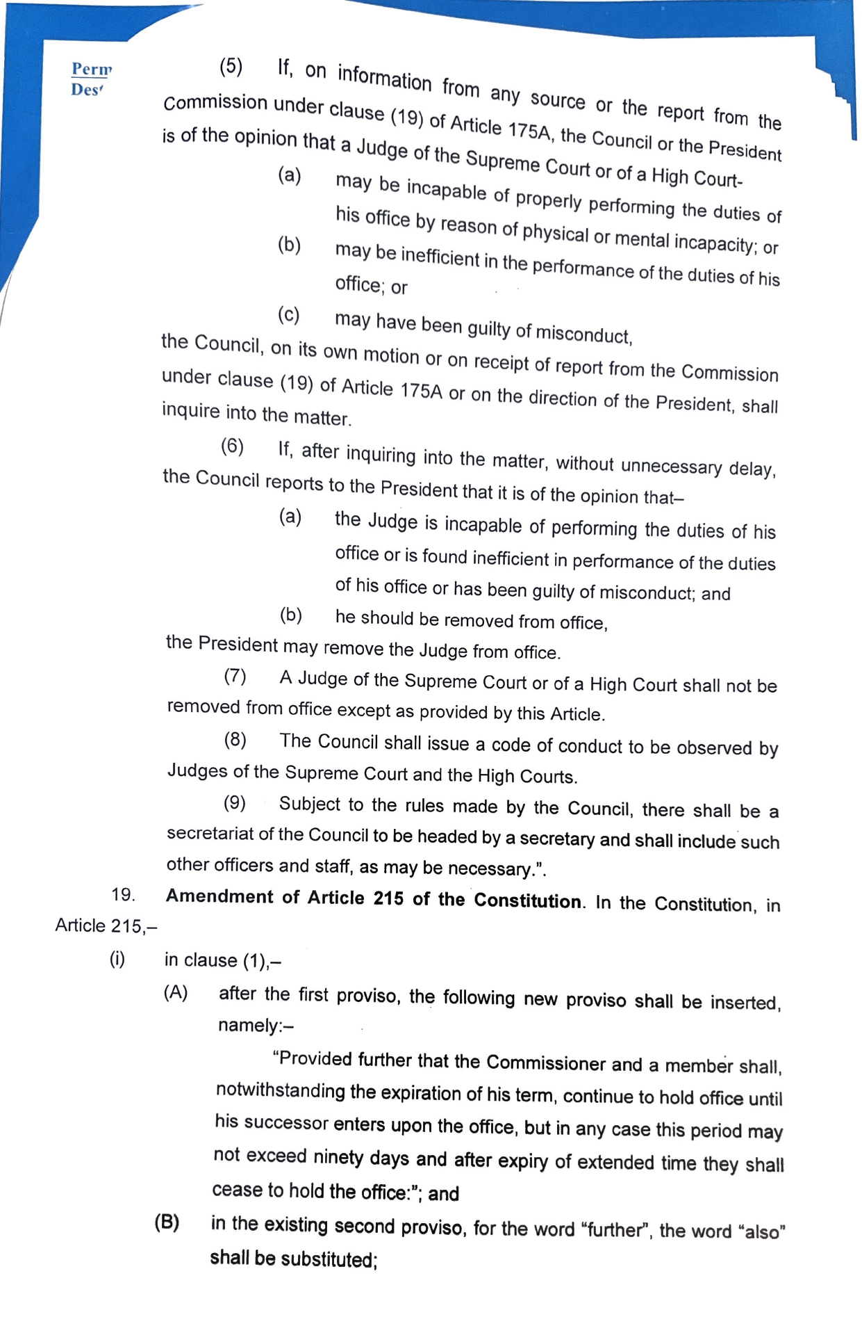حکومت نے ججز تقرری آرٹیکل 175 اے میں ترمیم کی تجویز بھی دی ہے جس کے مطابق جوڈیشل کمیشن صرف تقرری کرتا تھا، اب ہائیکورٹ کے ججز کی کارکردگی کا جائزہ لے سکے گا۔