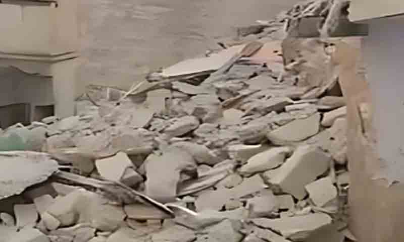 راولپنڈی، صادق آباد میں ٹرانسفارمرچوک میں پلازے کا ایک حصہ گرگیا۔