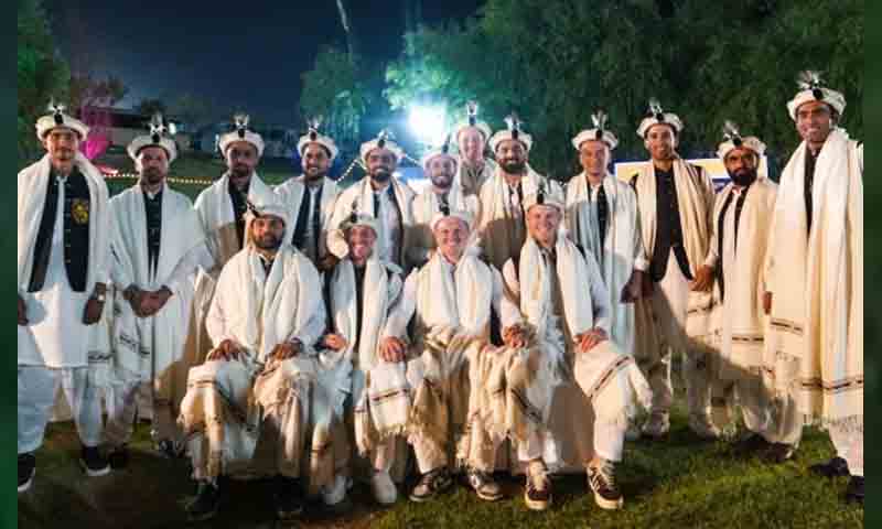 پشاورزلمی کی جانب سے ملکی وغیرملکی کرکٹرکو ثقافتی رنگ میں ڈھالنے کی تصاویر و ویڈیوزسوشل میڈیا پلیٹ فارمز پر تیزی سے وائرل ہورہی ہیں۔