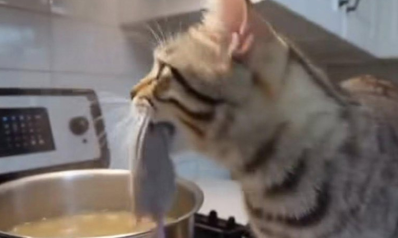 رپورٹ کے مطابق، ایک فوسٹر خاندان کے گھر میں نصب سیکیورٹی کیمرے نے وہ لمحہ قید کرلیا جب بلی “وینڈی” نے بڑی معصومیت کے ساتھ ایک ’’مردہ چوہا‘‘ اٹھایا اور سیدھا چولہے پر رکھے برتن میں ڈال دیا۔ اُس وقت باورچی خانے میں کوئی موجود نہیں تھا، لیکن ویڈیو دیکھنے کے بعد سب حیران رہ گئے۔