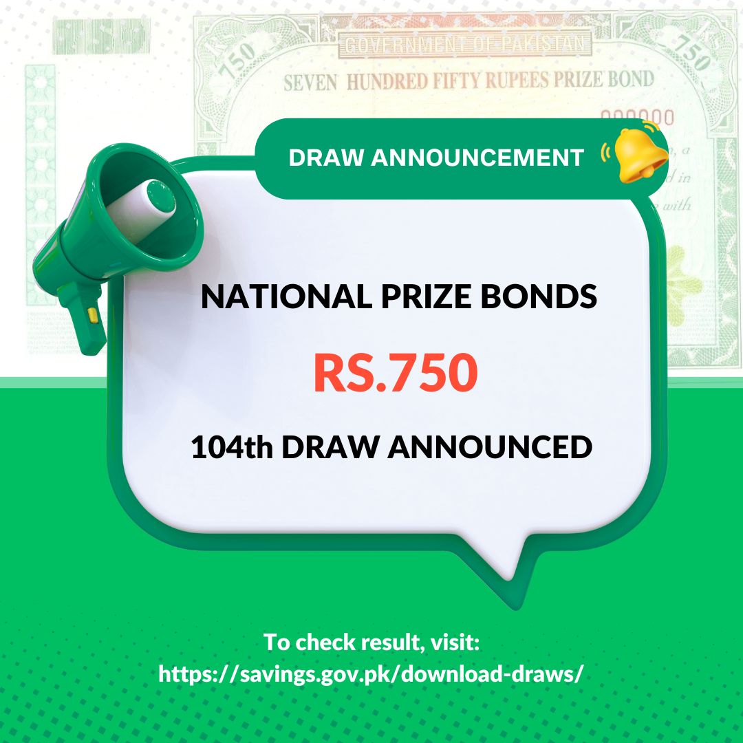 سٹیٹ بینک آف پاکستان بینکنگ سروسز کارپوریشن (SBP-BSC) کی جانب سے 750 روپے مالیت کے قومی انعامی بانڈز(750 prize bond draw) کی 104ویں قرعہ اندازی کے نتائج کا اعلان کردیا گیا۔ قرعہ اندازی 15 اکتوبر 2025ء کو مظفرآباد میں منعقد ہوئی، جس میں ملک بھر سے بڑی تعداد میں لوگوں نے شرکت کی۔