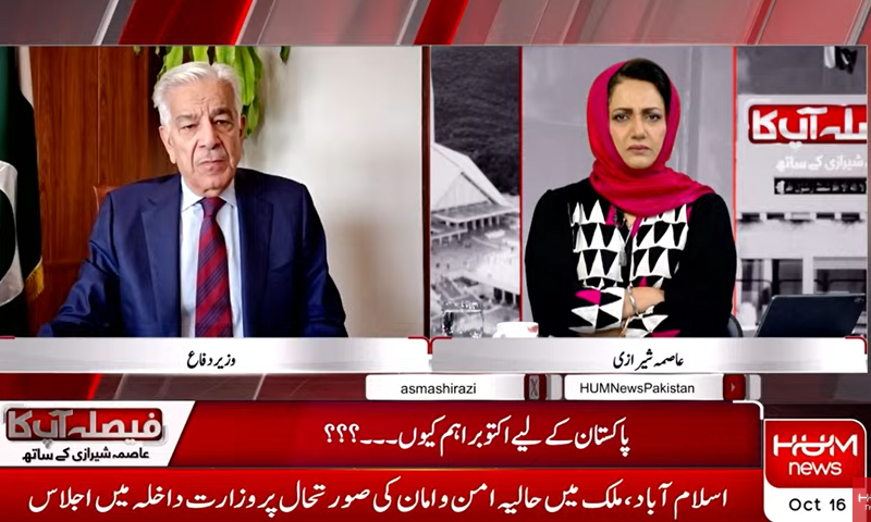 وزیر دفاع خواجہ آصف (Khawaja Asif) نے واضح کیا ہے کہ سیز فائر کی کال پاکستان نے نہیں دی بلکہ ہم افغانستان کی درخواست پر 48 گھنٹوں کیلئے عارضی جنگ بندی کرنے پر رضامند ہوئے۔