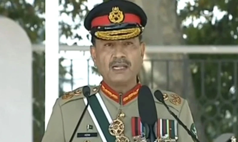 پاکستان ملٹری اکیڈمی کی پاسنگ آؤٹ پریڈ سے خطاب کرتے ہوئے ان کا کہنا تھا کہ میں قوم کو یقین دلاتا ہوں کہ انشاء اللہ، ہم اس مقدس سرزمین کا ایک انچ بھی دشمن کے حوالے نہیں ہونے دیں گے۔