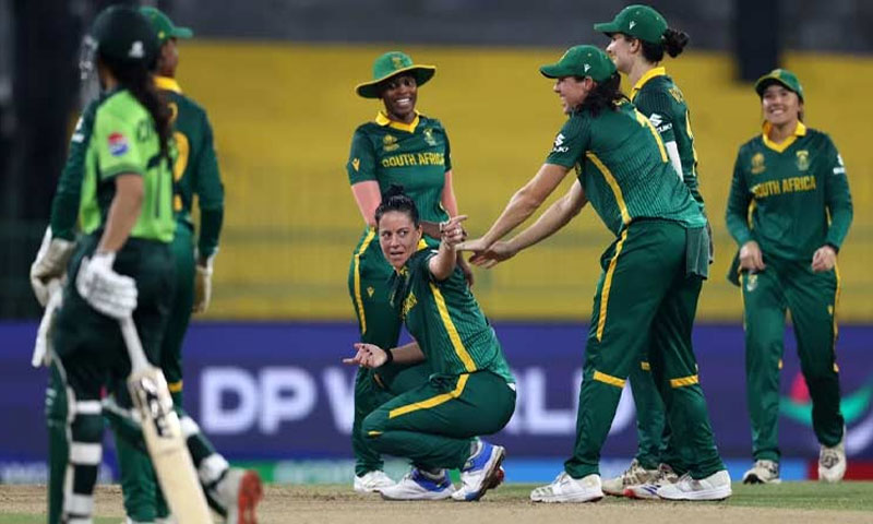 کولمبو: ویمنز ورلڈ کپ میں جنوبی افریقہ نے ڈی ایل ایس میتھڈ کے تحت پاکستان کو 150 رنز کے بھاری مارجن سے شکست دے کر میگا ایونٹ سے باہر کردیا۔