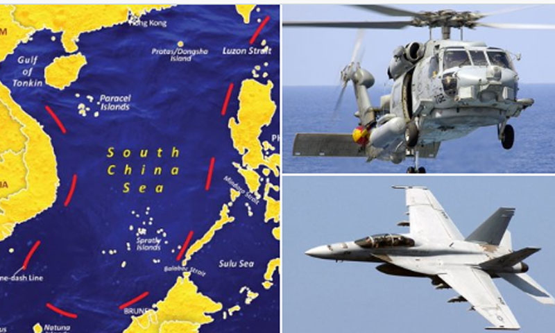 امریکی بحریہ کا ایک ہیلی کاپٹر اور ایک لڑاکا طیارہ دو الگ الگ واقعات میں جنوبی بحیرہ چین میں تباہ ہو گئے ہیں۔