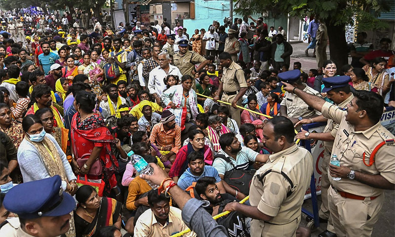 غیر ملکی خبر رساں ایجنسی کے مطابق آندھرا پردیش کے شہر امراوتی کے ضلع سریکا کولم کے مندر میں بھگدڑ کے باعث حادثہ پیش آیا۔ 2 ہزار کی گنجائش والے مندر میں 25 ہزار سے زائد افراد نے داخل ہونے کی کوشش کی۔