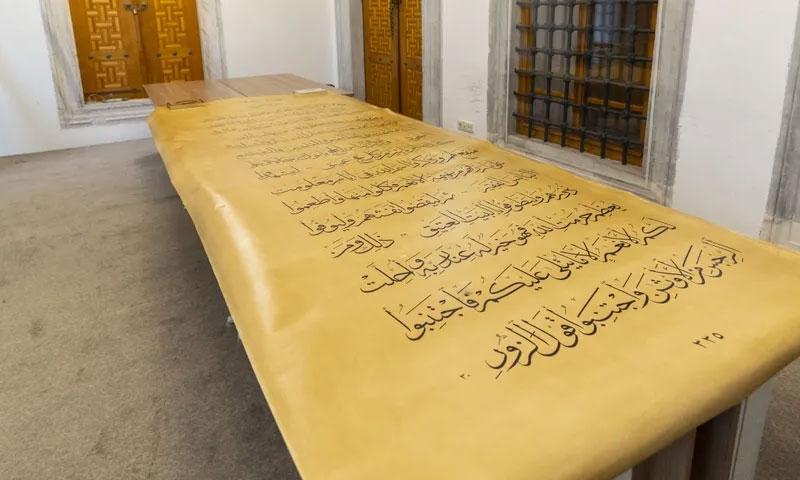 یہاں انہوں نے دن رات ایک کر کے قرآن پاک کو مکمل طور پر “ثلث” رسم الخط میں لکھا۔ ہر صفحہ جب کھولا جاتا ہے تو تقریباً تین میٹر چوڑا دکھائی دیتا ہے۔