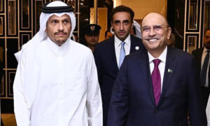 صدرِ مملکت آصف علی زرداری سے قطرکے وزیراعظم نے خصوصی ملاقات کی جس میں دونوں ممالک کے درمیان دو طرفہ تعلقات، تجارت، سرمایہ کاری اورعلاقائی امور پرتفصیلی تبادلہ خیال کیا گیا۔