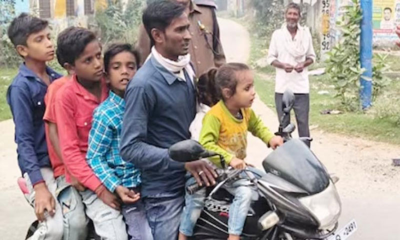 غیر ملکی خبر رساں ایجنسی کے مطابق بھارتی ریاست اترپردیش کے ضلع ہاپوڑ کے علاقے گڑھ مکتیشور میں ٹریفک پولیس معمول کی چیکنگ کر رہی تھی۔ کہ ایک شخص موٹرسائیکل پر 6 بچوں کو بٹھائے پہنچ گیا۔
