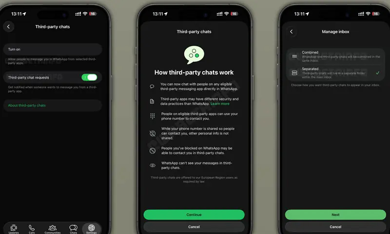 میڈیا رپورٹس کے مطابق صارفین انسٹنٹ میسیجنگ ایپلی کیشن سے کسی دوسری میسیج ایپ پر بھی میسیج بھیج سکیں گے۔
