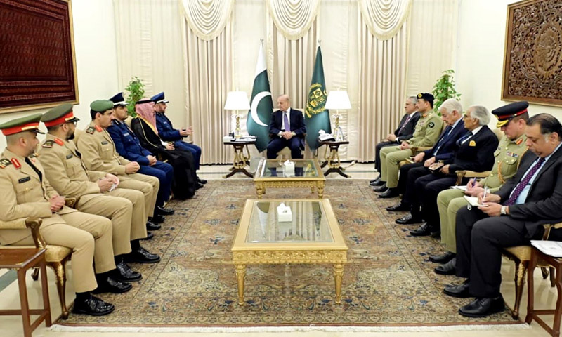 اسلام آباد، وزیراعظم شہبازشریف نے سعودی مسلح افواج کے چیف آف جنرل اسٹاف، جنرل الرویلی کا استقبال کیا۔
