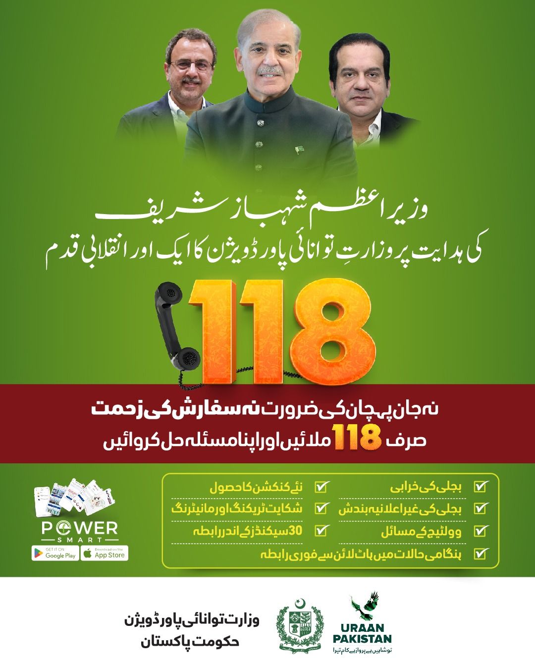 بجلی کے شعبے میں مسائل کے حل کیلئےعوامی ہیلپ لائن 118 کا افتتاح کردیا گیا،افتتاح وزیر توانائی سردار اویس لغاری نے کیا۔