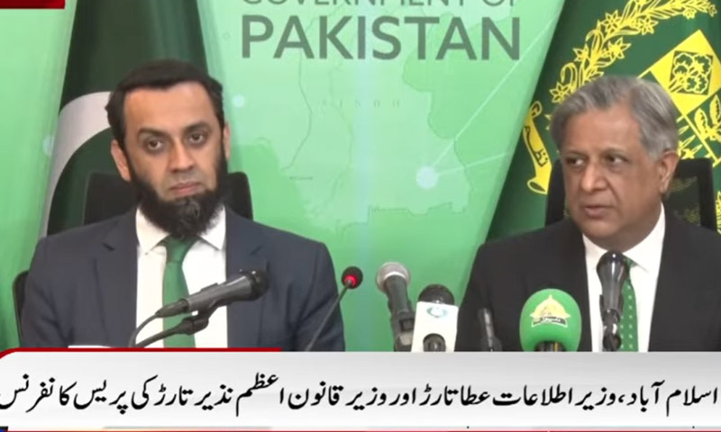 وفاقی وزیر قانون اعظم نذیر تارڑ اور وفاقی وزیر اطلاعات عطا تارڑ نے اڈیالہ جیل میں بانی پاکستان تحریک انصاف (پی ٹی آئی) سے ملاقات اور سہولیات کے حوالے سے وضاحت پیش کی ہے۔