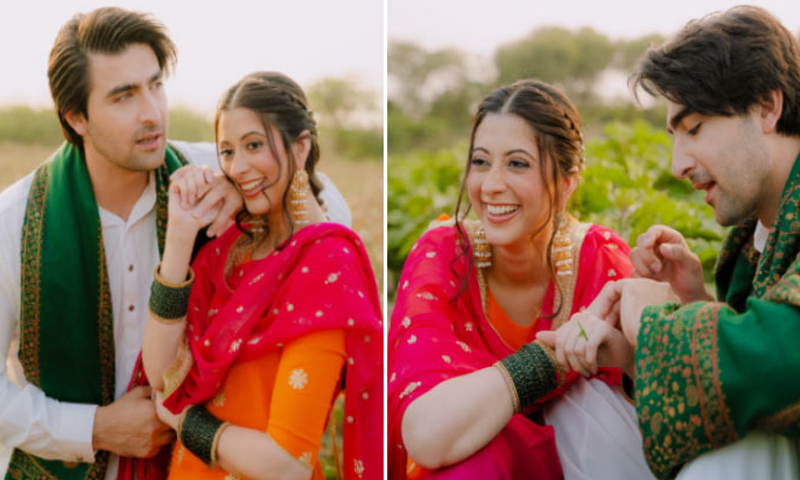 سبینہ سید اور خاقان شاہنواز نے انسٹاگرام پر ایک خوبصورت کولیبرشن پوسٹ کے ذریعے اپنی منگنی کا اعلان کیا۔