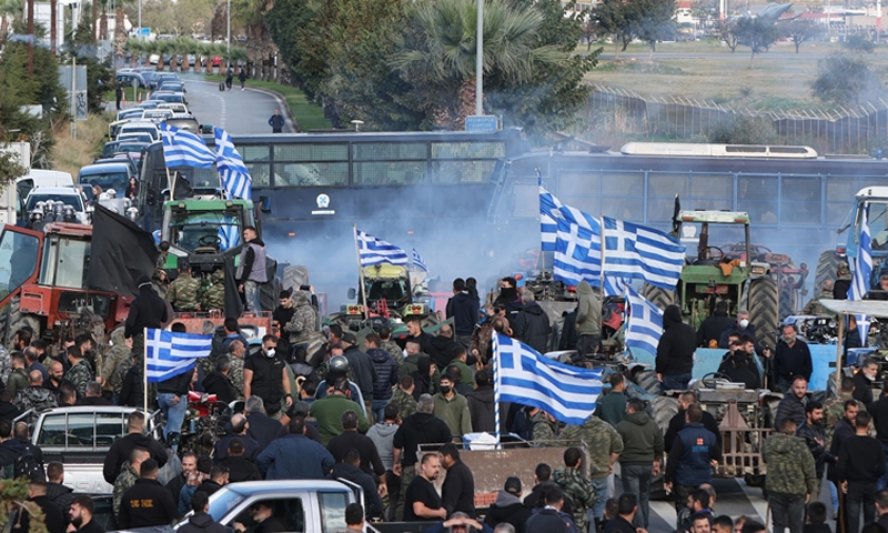 خبر ایجنسی کے مطابق کسانوں نے ٹریکٹر لگا کر ملک بھر میں درجنوں سڑکیں بند کر دیں ،یونانی جزیرے کریٹ پر ایئرپورٹ بھی عارضی بند کر دیا گیا۔