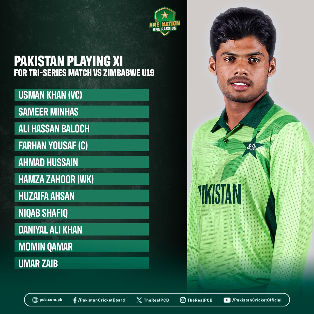 ہرارے میں جاری انڈر 19 سہ فریقی سیریز(pak u19 vs zim u19) کے تیسرے میچ میں پاکستان نے زمبابوے کو جیت کیلئے 355 رنز کا بھاری ہدف دیدیا، پاکستان کی جانب سے سمیر منہاس اور محمد عثمان نے شاندار سنچریاں بنائیں ۔