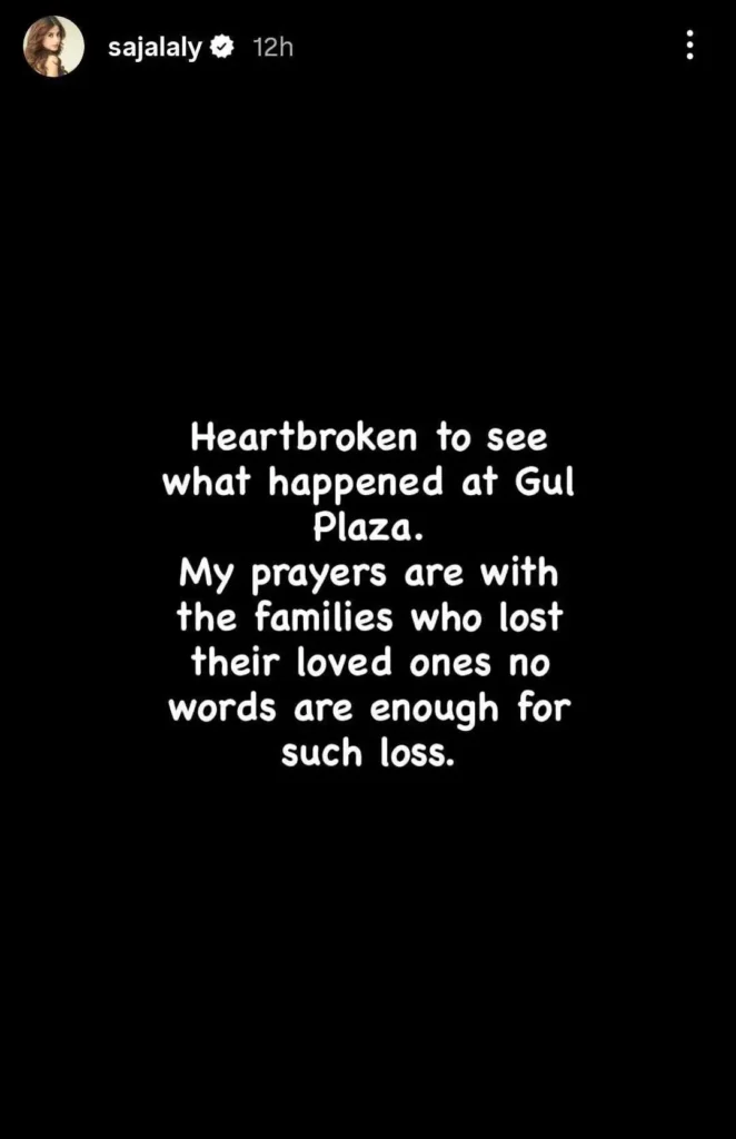 سانحے کے بعد شوبز انڈسٹری سے تعلق رکھنے والی شخصیات نے بھی متاثرین کے غم میں شریک ہوتے ہوئے تعزیتی پیغامات جاری کیے۔ اداکارہ منال خان، ہانیہ عامر، سجل علی، یشمہ گل، ایمن خان اور گلوکار سمر جعفری نے انسانی جانوں کے ضیاع پر گہرے دکھ کا اظہار کیا۔