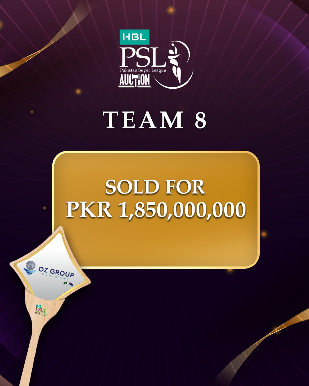 پاکستان سپر لیگ (پی ایس ایل) سیزن 11 کے لیے تاریخ کی مہنگی ترین ٹیم خریدنے کا اعزاز او زیڈ گروپ نے اپنے نام کیا، جس نے سیالکوٹ کی فرنچائز کے مالکانہ حقوق 185 کروڑ روپے میں 10 سال کے لیے حاصل کیے۔