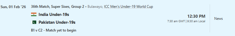 آئی سی سی انڈر 19 ورلڈ کپ کے سپر سکس مرحلے میں دونوں ٹیمیں اہم مقابلے میں حصہ لیں گی، ٹی ٹوئنٹی ورلڈ کپ میں بھی دونوں ٹیموں کے درمیان ٹاکرا ہوگاجبکہ ویمنز ایشیا کپ رائزنگ اسٹارز میں بھی پاک بھارت میچ شیڈول ہے۔