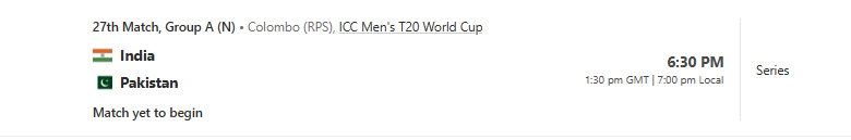 ٹی ٹوئنٹی ورلڈ کپ 2026 کے اہم میچ میں دونوں ٹیمیں 15 فروری کو کولمبو میں آمنے سامنے ہونگی۔
