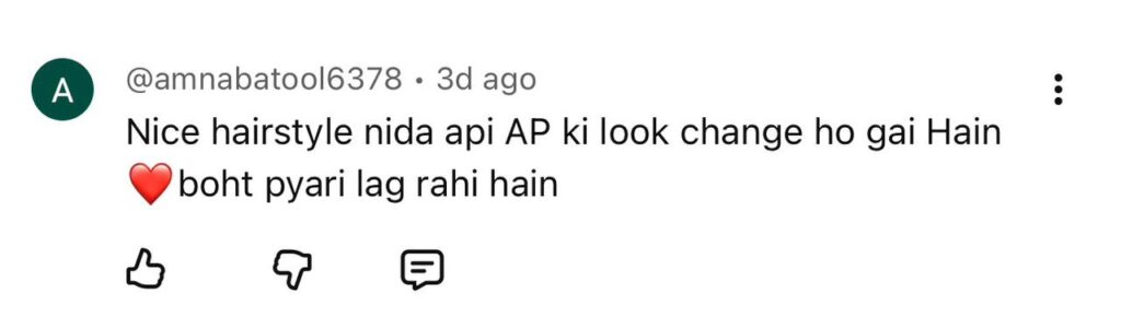 تفصیلات کے مطابق ندا یاسر کے نئے ہیئر اسٹائل کو کچھ صارفین نے مشہور ڈرامہ سیریل معمہ میں دکھائے جانے والے کردار کے اسٹائل سے مشابہ قرار دیا، جبکہ دیگر نے اسے بالکل منفرد اور دلچسپ بھی پایا۔