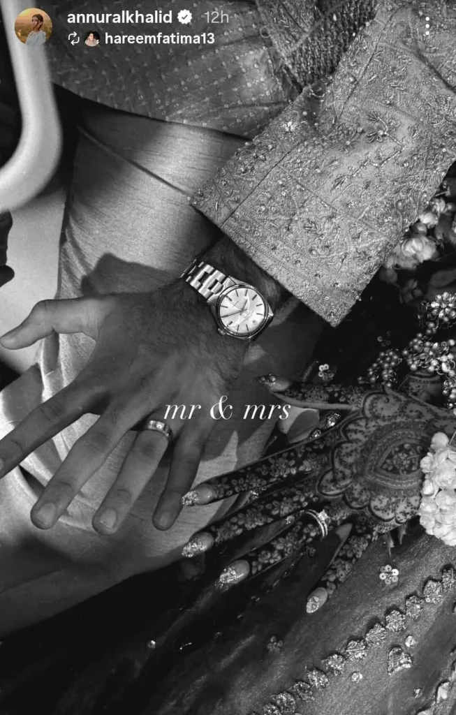 اس تصویر میں شادی کی انگوٹھیاں نمایاں تھیں، جبکہ کیپشن میں “Mr & Mrs” لکھا گیا، جو ان کے نئے رشتے کی تصدیق کرتا ہے۔