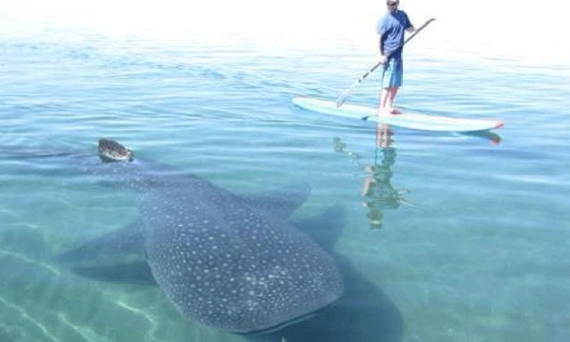 30 میٹر طویل وہیل مچھلی بھی کشتی کے ساتھ ساتھ تیراکی کرتی رہی۔
