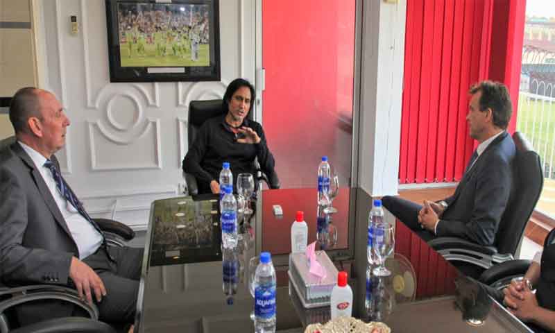 رمیز راجہ سے ڈپٹی چیئرمین ای سی بی کی ملاقات، آئندہ سیریز کے حوالے سے بات چیت