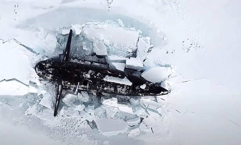 ایک محدود جگہ میں تین جوہری قوت سے چلنے والی آبدوزیں برف کے نیچے سے سامنے آئیں۔