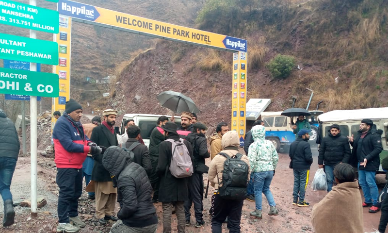 زمینی رابطہ منقطع ہونے سے شاہراہ کاغان کے دونوں اطراف گاڑیوں کی لمبی قطاریں لگ گئیں ہیں۔