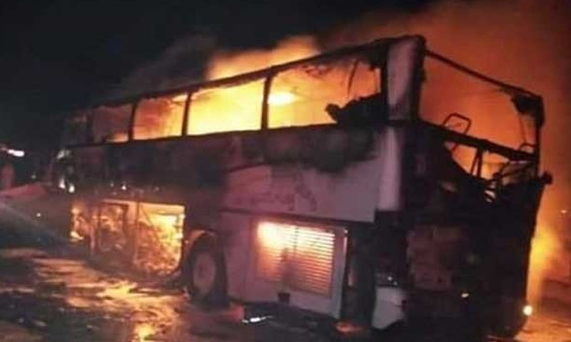 پولیس کے مطابق بس میں 30 سے ​​زائد مسافر سوار تھے