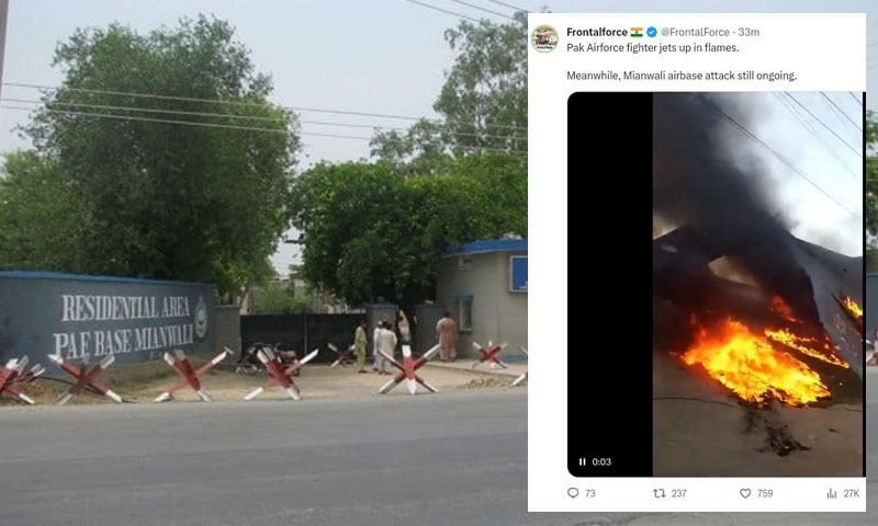 بھارت نے نومئی کے واقعات کی تصاویر کو میانوالی ائیر بیس حملہ قرار دیدیا