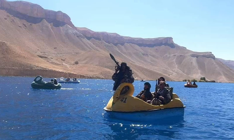 افغان جنگجوؤں کی جھیل میں کشتی رانی