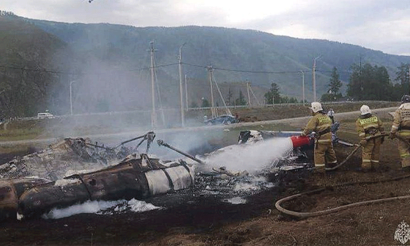 ہیلی کاپٹر سیاحوں کو سائبیریا کی سیر کے لیے لے کر نکلا تھا۔