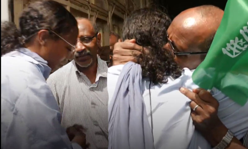 اسکائی نیوز کی رپورٹر یسرا الباقرجدہ ائیرپورٹ پر کوریج کیلئے موجود تھیں