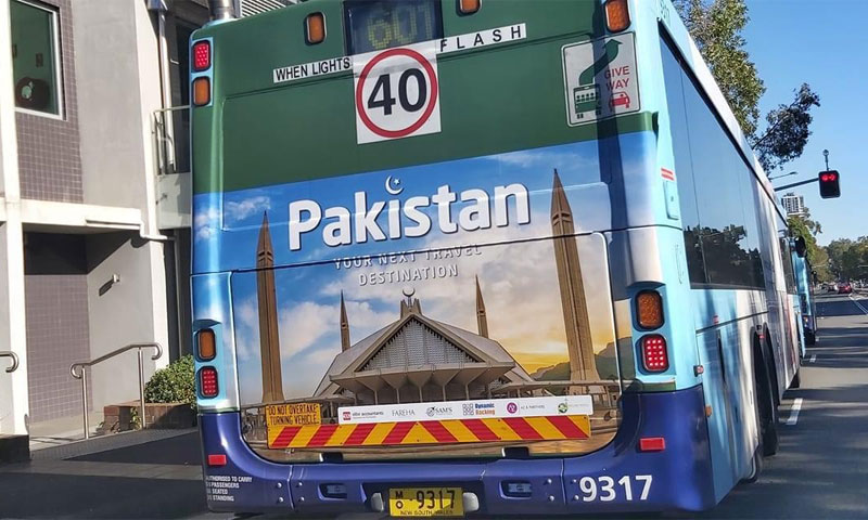بسوں پر آویزاں کی گئی تصاویر میں جنوبی پنجاب کے قلعہ دراوڑ اور مینار پاکستان کی تصاویر موجود ہیں۔