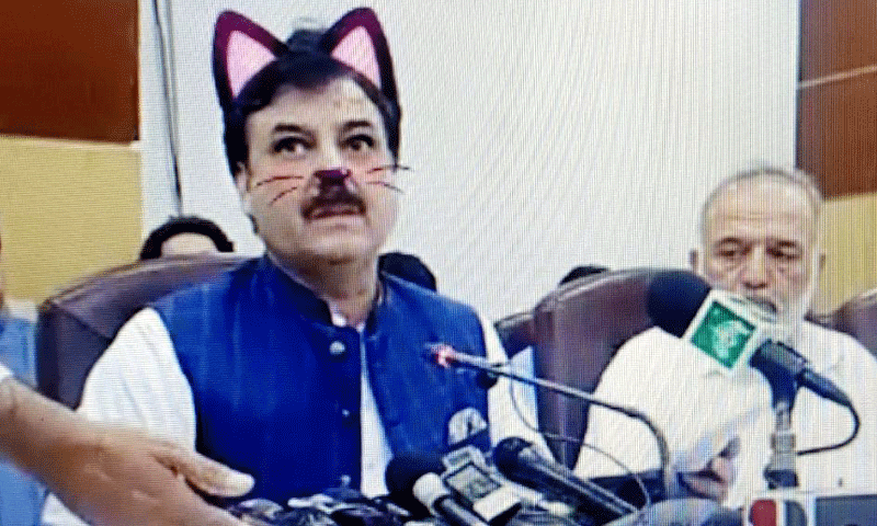 لائیو سٹریم میں شوکت یوسفزئی اور محکمہ اطلاعات کے افسر کے سر پر بلی کے مارکس لہراتے رہے