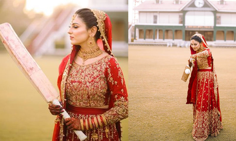 پاکستانی کرکٹر کائنات امتیاز کا شادی کے جوڑے میں کرکٹ فوٹو شوٹ