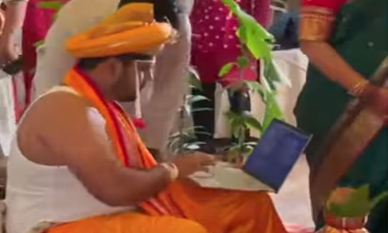 پنڈٹ سمیت دیگر لوگ دلہے کے کام ختم کرنے کا انتظار کرتے رہے۔